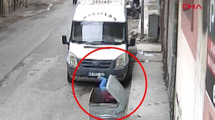 Öte yandan, minik çocuğun meskenin penceresinde düştüğü anlar ise güvenlik kamerasına yansıdı. İmajlarda, çocuğun çöp tenekesinin içine düştüğü, çöpün içindeki kedinin panikle dışarı çıktığı anlar yer aldı.