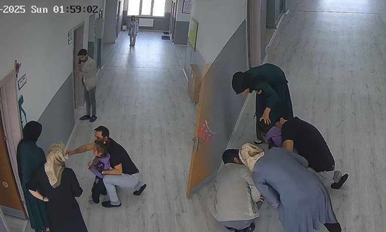 Olay, okulun koridorundaki güvenlik kamerasına yansıdı.
