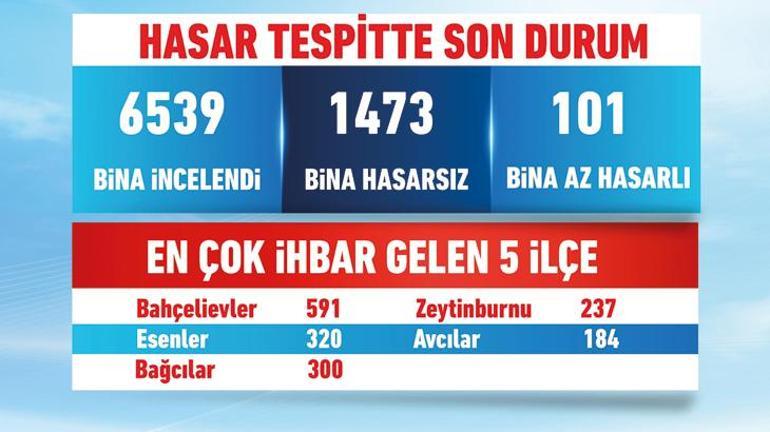 En çok hasar ihbar dağılımı sırasıyla; Bahçelievler, Esenler, Bağcılar, Zeytinburnu, Avcılar oldu.