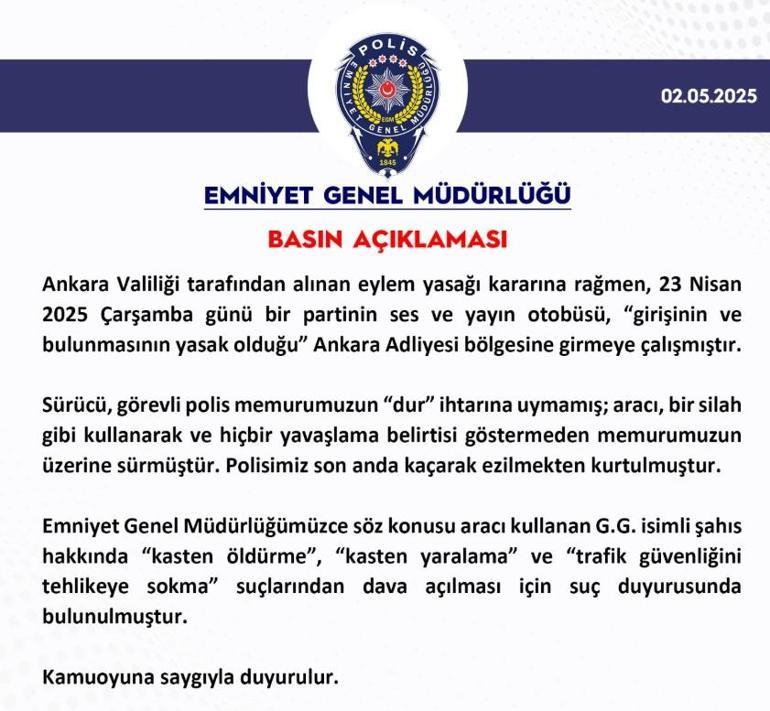 İçişleri Bakanı Ali Yerlikaya, sosyal medya hesabından, Ankara’da polis memurunun üzerinde araç sürüldüğü anların imajlarını paylaştı. Bakan Yerlikaya’nın açıklaması şöyle: Ankara’da Misyonunu yapan bayan polisimize araçla saldırmak, yalnızca bir polise değil; devletimize, huzur ve güvenliğimize ve kamu tertibine yapılmış bir tehdittir.