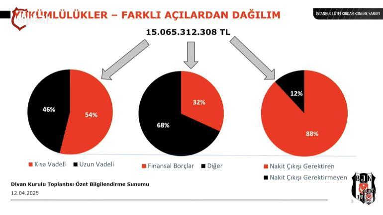 Beşiktaş’ın toplam borcu, 15 milyar 65 milyon 312 bin 308 TL olarak açıklandı.
