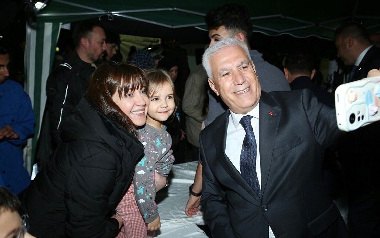 BURSA (İGFA) – Bursa Büyükşehir Belediye Başkanı Mustafa Bozbey, BUSKİ’de gerçekleşen mazbata töreninin ardından Emir Sultan Camii’nde vatandaşlarla bir araya geldi. Emir Sultan Camii meydanında Bursalıların büyük ilgiyle karşıladığı Bursa Büyükşehir Belediye Başkanı Mustafa Bozbey, Bursalıların Kadir Gecesini tebrik ederek vatandaşlara lokma dağıtırken onlarla sohbet de etti. Başkan Bozbey, mazbata töreninin hem Ramazan ayına hem de Kadir Gecesine denk gelmesinden duyduğu memnuniyeti dile getirdi. Vatandaşlardan Bursa Büyükşehir Belediye Başkanlığı görevi için tebrikler alan Başkan Bozbey, teveccühlerinden ötürü Bursalılara teşekkür etti.