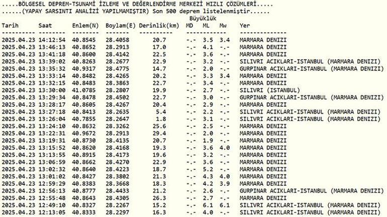 “Marmara Bölgesi içinde Türkiye’nin en tehlikeli zelzele zonu olan Kuzey Anadolu Fay Zonu, 3 kol halinde uzanmakta ve kıymetli bir zelzele tehlikesine neden oluyor. Bölgede, son 1600 yıl içinde büyüklükleri 6.8 ve daha büyük olan 41 zelzele, yalnızca geçtiğimiz yüzyıl içinde ise büyüklüğü 6.8 ve daha büyük 8 zelzele ve büyüklüğü 5 ve daha büyük 50 adet üzerinde zelzele meydana gelmiştir. Bu türlü bir bölgede vakit zaman büyüklükleri 4-6 ortası sarsıntıların meydana gelmesi sıra dışı olarak ele alınamaz. 1999 İzmit sarsıntısı sonrası oluşan 2006 Gemlik (5.2) ve Manyas (5.2), 2011 (5.1) ve 2012 (5.0) Marmara Denizi, 2019 Silivri (5.7) ve 2023 Gemlik Körfezi (5.1) sarsıntıları bu durumun delilleridir. Bu bağlamda 23 Nisan 2025 5.9 ve 6.2 Silivri Açıkları zelzeleleri bölgedeki bu zelzele aktifliğinin artışının bir delili olarak ele alınabilirler.” – Prof. Dr. Murat Utkucu