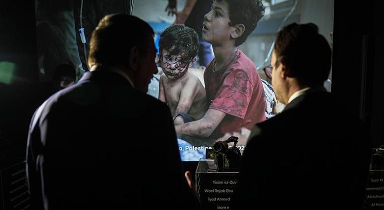 Filistin’de hayatını kaybeden gazetecilerin isimlerinin, bölgeden gelen ziyan görmüş kamera ve fotoğraf makinelerinin, AA foto muhabirleri tarafından Filistin’de çekilen fotoğrafların sergilendiği “Sessiz Tanık” galerisini gezen Yılmaz, AA’nın bölgede yaşananların dünyaya duyurulmasında değerli rol üstlendiğini ifade etti.