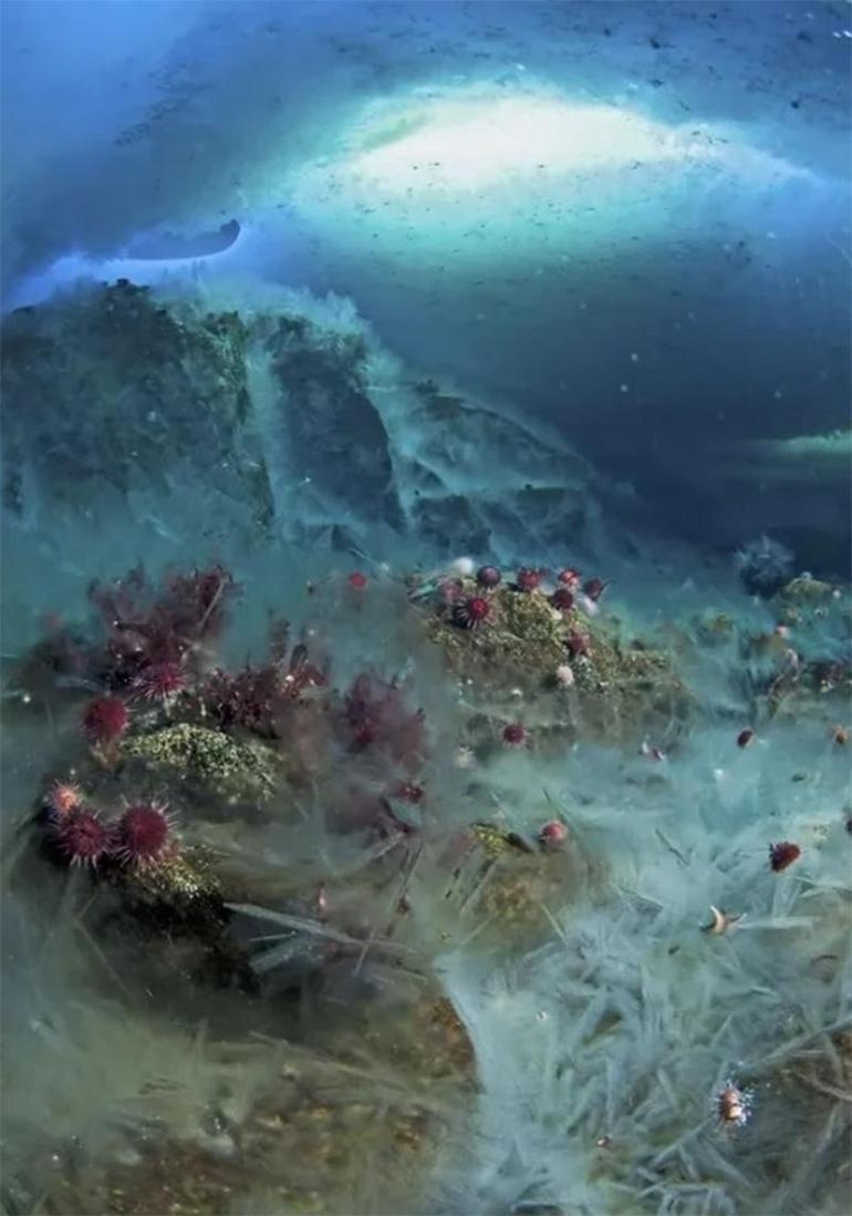 Birkaç yıl evvel BBC’nin ‘Dünya’nın Mükemmel Mevsimleri‘ isimli bir belgesel serisinde yayınlanan kısımda uzmanlar daha evvel duydukları lakin bir türlü bulamadıkları ‘ölüm parmağı’nı sonunda buldular. Sinema grubu mevt parmaklarından birinin oluşumunu, ürkütücü bir formda deniz tabanına hakikat sürünerek ilerlerken ve dokunduğunda yoluna çıkan her şeyi dondururken yakalamayı başardı. Çok soğuk ve hava tüplerini değiştirme zaruriliği nedeniyle dalgıçlar tüm bir olayı fotoğraflamaya yetecek kadar uzun müddet aşağıda kalamadılar lakin tekrar de okyanusun derinlerinde olup bitenleri gözlemleyebildiler. BBC’nin kadrajından tüm dünyaya gösterilen bu imgeler birinci izleyen biri için bir bilim kurgu sinemasının kesimi üzere hissettirebiliyor lakin bu manzaraların başkahramanı denizin yüzeyinden içine giren, birkaç saat içinde büyüyen ve içinde tuzlu su bulunan bir buz tüpü, yani brinikül. Bizim bildiğimiz ismiyle ‘ölüm parmağı.’