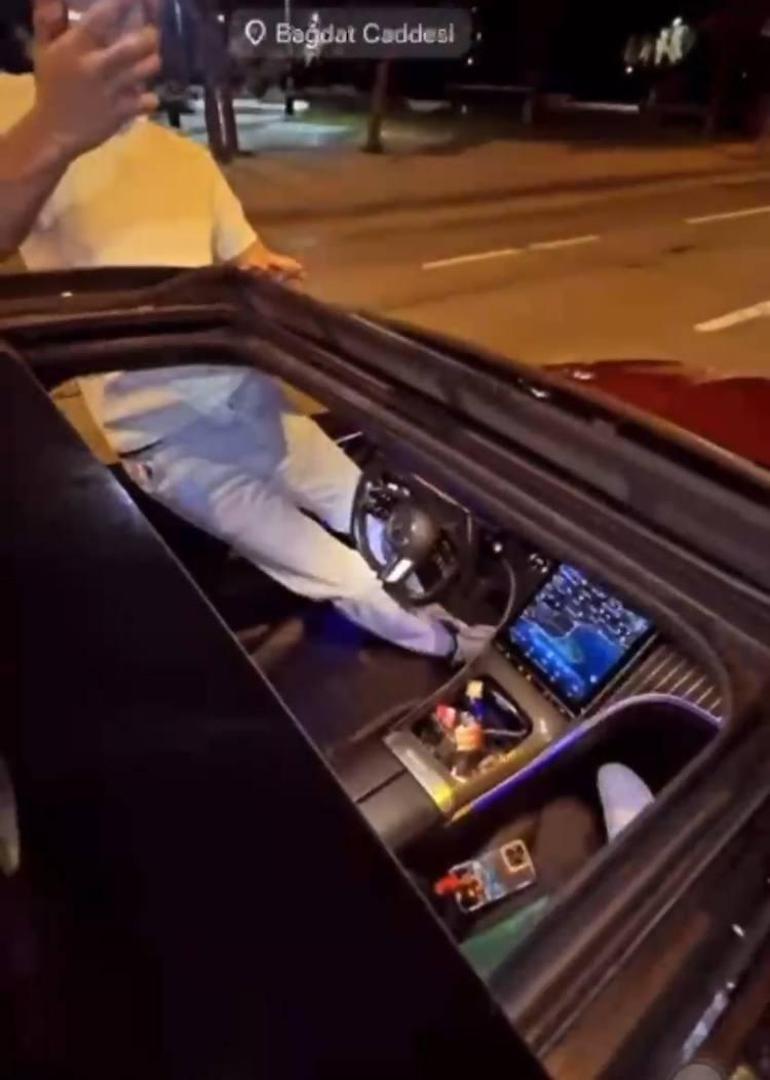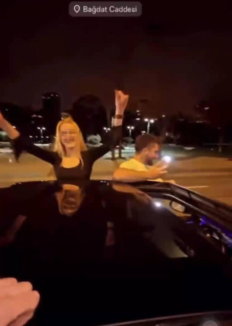 Olay, 9 Nisan’da Caddebostan Mahallesi Bağdat Caddesi’nde yaşandı. Araba ile seyir halinde olan şoför, camdan sarkarak ayağıyla direksiyonu denetim etmeye çalıştı. Arabanın art ve ön kısmında camdan sarkan şahıslar ise müzik eşliğinde dans etti.
