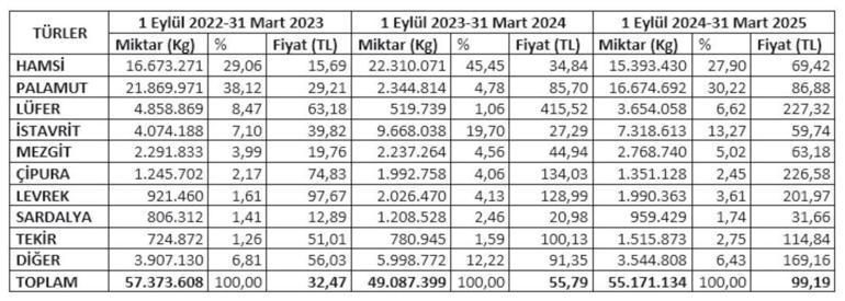 Av dönemi palamut, hamsi, istavrit, lüfer, sarıkanat, mezgit açısından bereketli geçti. Dönemin başında ağları dolduran palamut akını, aralık ayı sonuna kadar devam etti. Lüfer ve sarıkanat avı geç başlamasına karşın neredeyse bütün dönem boyunca çokça yakalandı. Özelikle boğazda hala sarıkanat ve lüfer geçişleri sayesinde bu balıklar tezgahlarda halâ taze bulunabiliyor. Hamsi de 150 TL’den tezgahlarda yerini alınca dönemin en çok tüketilen balığı oldu. Son bir aydır ise kalkan balığında bolluk yaşanıyor.