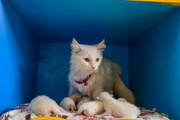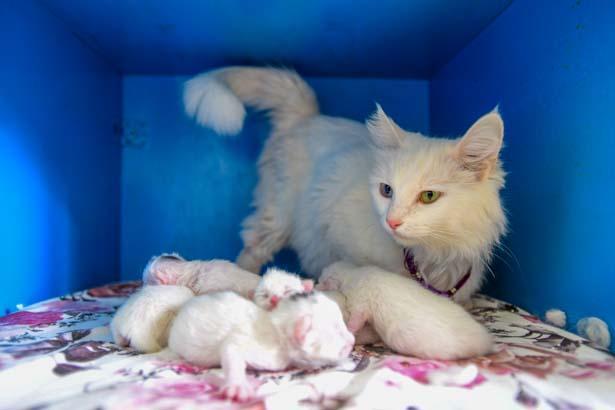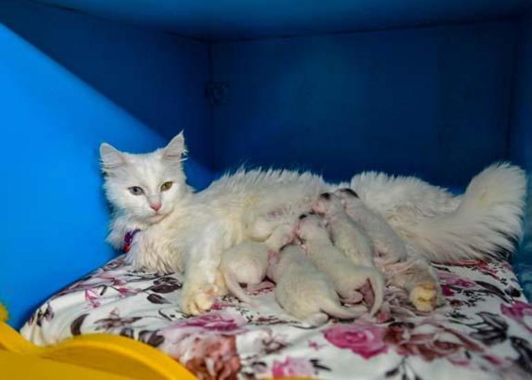 Dünya hoşu Van kedisi ‘Su’ 5 yavru doğurdu