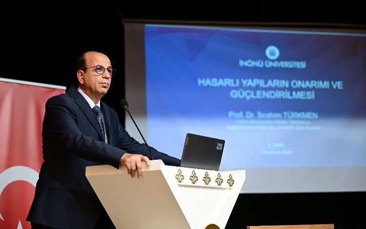 Yapılan konuşmaların ardından İnönü Üniversitesi Rektör Yardımcısı ve İnşaat Mühendisliği Yapı Anabilim Dalı Başkanı Prof. Dr. İbrahim Türkmen, ‘Hasarlı Yapıların Onarımı ve Güçlendirilmesi’ konularında bilgiler aktardı.