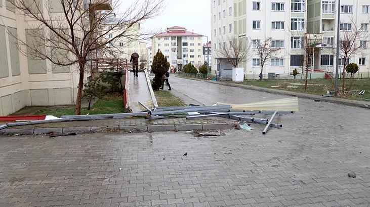 Yunus Emre Mahallesi’nde ise müstakil konutun çatısından uçan materyaller, birebir binanın duvarını yıktı. Polis takımları muhtemel ziyanlara karşı tedbir alırken, itfaiye grupları de hasar oluşan yerlerde tamirat yaptı.