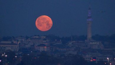İstanbul'da baharın habercisi olarak bilinen ve 'Pembe Ay' ismiyle anılan Dolunay, gökyüzünde görsel şölen oluşturdu.