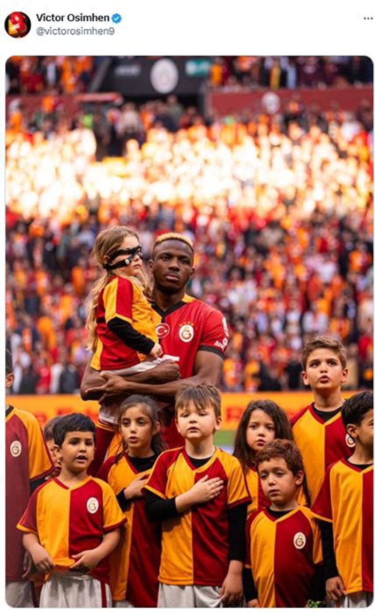 Galatasaray’ın Nijeryalı golcüsü Osimhen, Fenerbahçe maçının akabinde Sivasspor maçında çocuklarla olan fotosunu paylaştı.