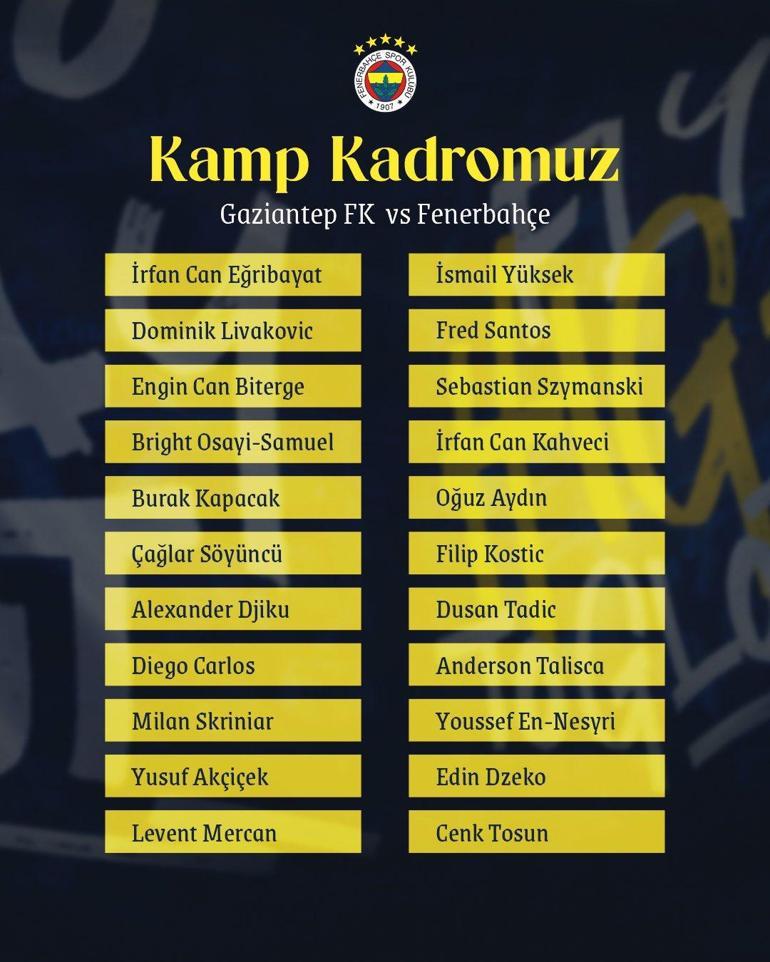 Fenerbahçe’nin Gaziantep FK maçı takımı belirli oldu.