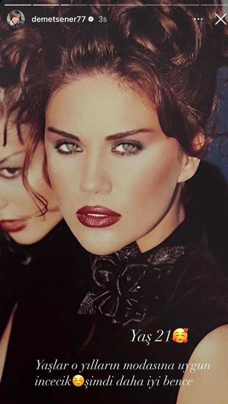 ‘Yaş 21’ diyen Şener, “Kaşlar o yılların modasına uygun incecik. Artık daha güzel bence” dedi. Ünlü model artık 48 yaşında. Fit hali dikkat çeken isim her sabah yürüyüş yapmayı ihmal etmiyor.
