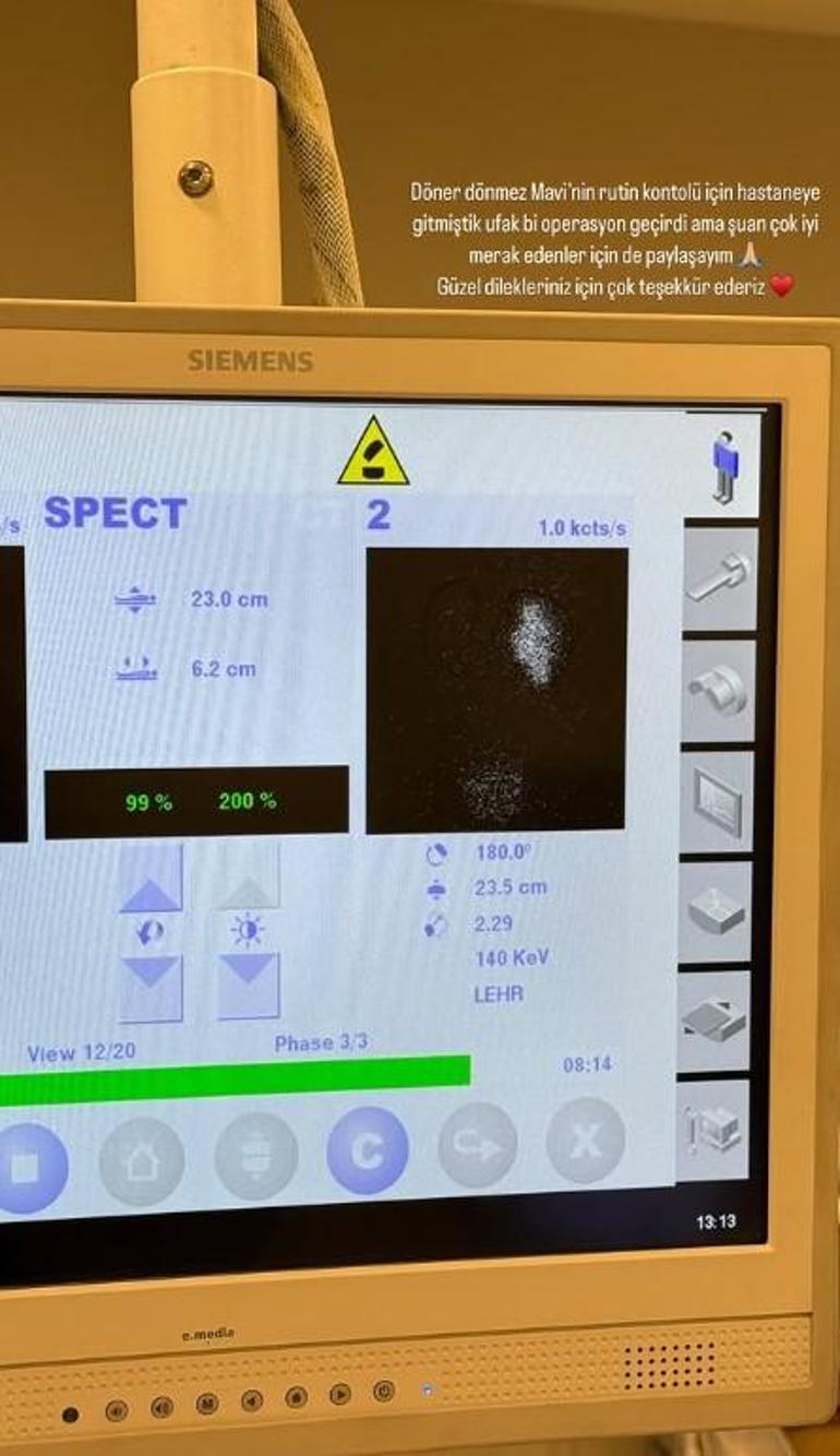 ‘Döner dönmez Mavi’nin rutin denetimi için hastaneye gitmiştik. Ufak bir operasyon geçirdi lakin şu an çok uygun. Merak edenler için de paylaşayım. Hoş dilekleriniz için çok teşekkür ederiz.’