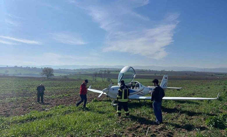 Havada panik! Eğitim uçağı tarlaya mecburî iniş yaptı