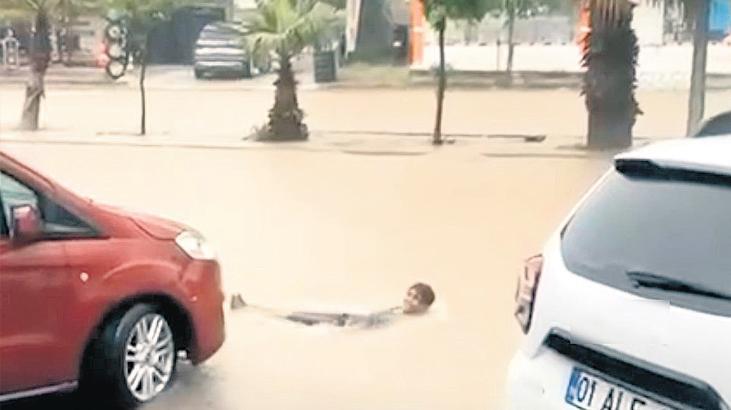 Adana’da dün sabah saatlerinden itibaren sağanak tesirli oldu. Yağış, kent genelinde hayatı olumsuz etkiledi. Birçok işyeri sular altında kalırken başta Türkmenbaşı Bulvarı olmak üzere Kıyıboyu Caddesi, Alparslan Türkeş Bulvarı ve D-400 kara yolunda birçok alt geçit sular altında kaldı. Araçla mahsur kalan birtakım vatandaşlar, kamyonetin üzerine çıkarak bekledi. Bir çocuk ise Türkmenbaşı Bulvarı’ndaki su birikintisinde yüzmeye çalıştı.