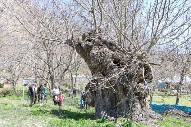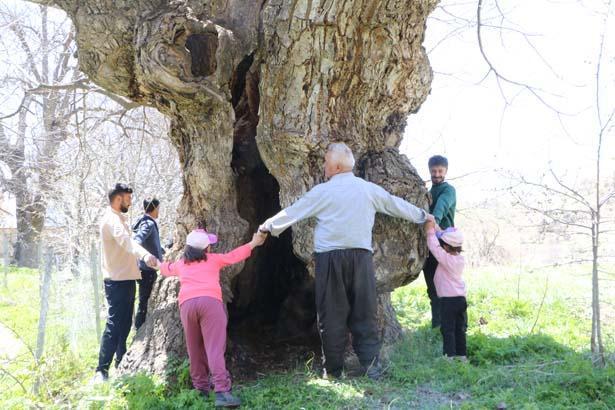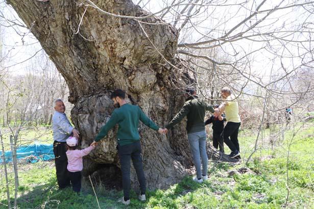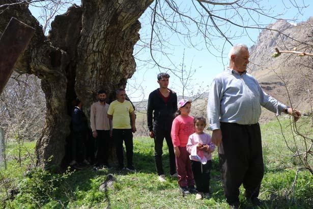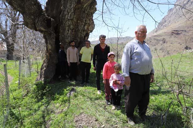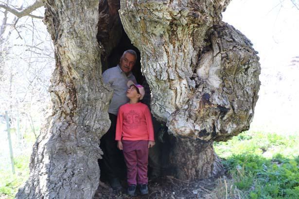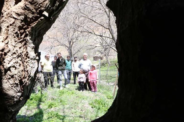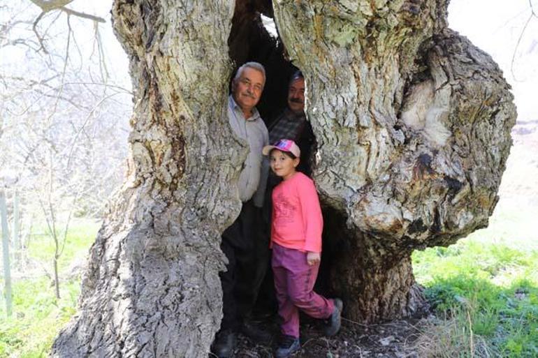 Ağacın çocukluğundan bu yana bahçelerinde bulunduğunu anlatan Mir Sevdin Güngör (66), yaklaşık 500 yıllık olduğunu kestirim ettiklerini belirterek, “Babam dedesinden, dedesi de kendi dedesinden bu ağacın kıssasını dinlemiş. Hala meyve veriyor. Gördüğünüz üzere kovuğuna 3’ü çocuk 12 kişi sığdı, hatta birkaç kişi daha sığabilirdi” diye konuştu.