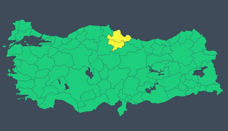 Meteoroloji Genel Müdürlüğü’nün yayımladığı haritada, Samsun ve Amasya için sarı kodlu gök gürültülü sağanak yağış ihtarında bulunuldu.