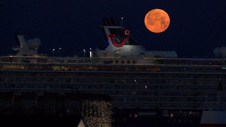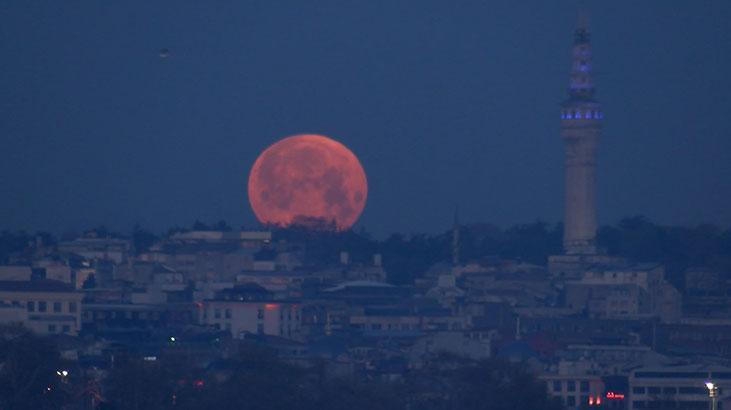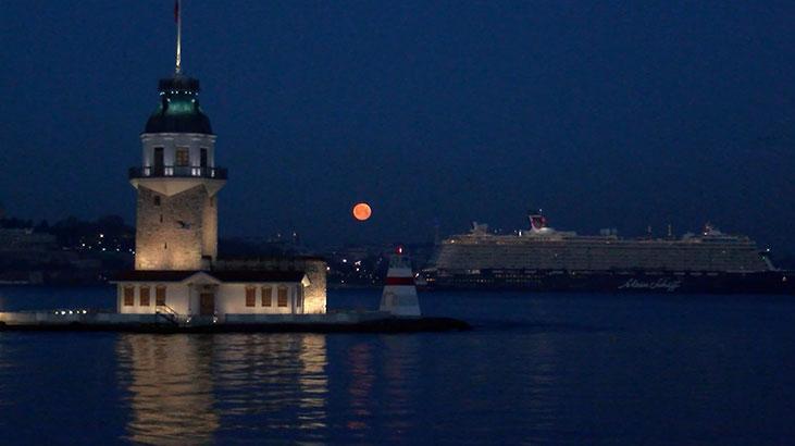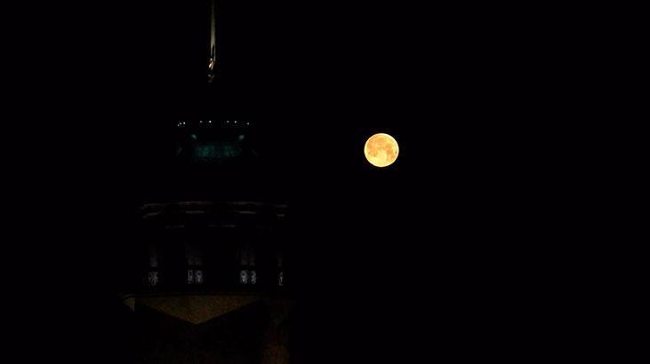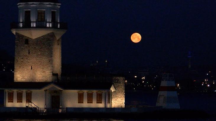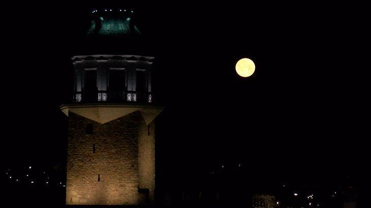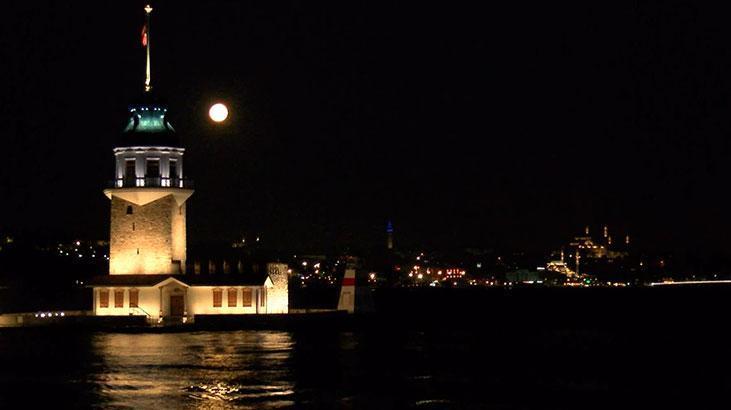 Battığı sırada İstanbul’un simge yapıtlarıyla bir ortaya gelince eşsiz manzaralar oluştu. Üsküdar kıyıda Kız Kulesi ile tıpkı kareye giren Dolunay, İstanbul’un birçok yerinden gözlemlendi.