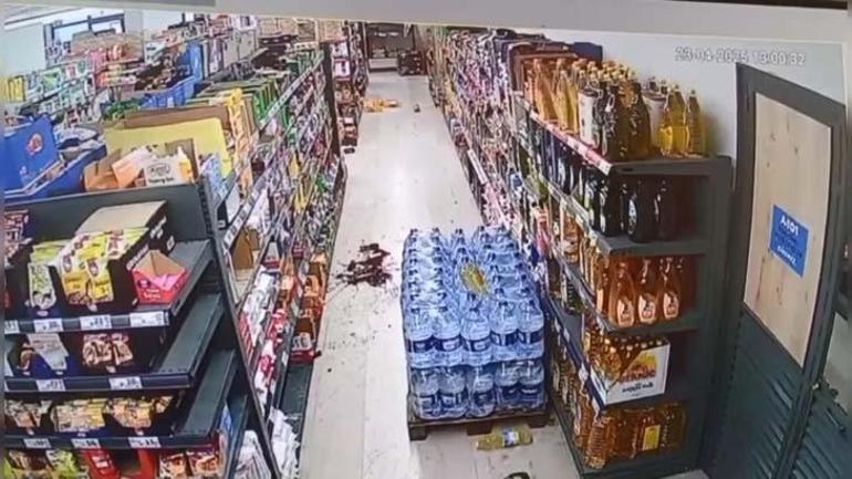Bir kırtasiyede zelzele sırasında kaydedilen görüntüğlerde ise raflardaki eserler yere düştü. Sarsıntıya ahçede yakalanan bir kişi ise köpeğiyle bahçede koştuktan sonra demir parmaklıklardan atlayarak bahçe dışına çıkmaya çalıştı.