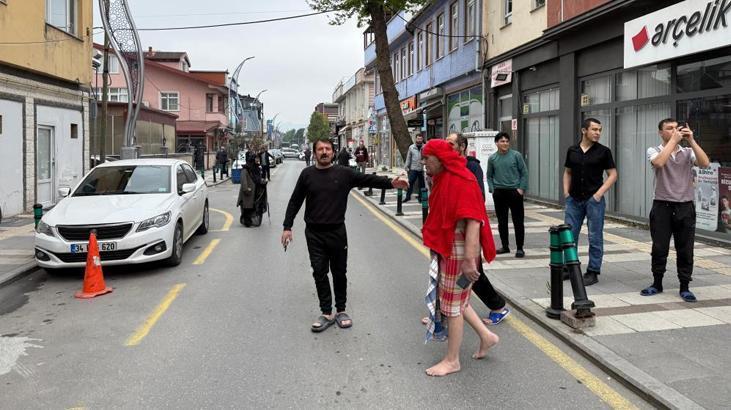 İstanbul’un Silivri açıklarında 6.2 büyüklüğünde meydana gelen ve Sakarya’da da hissedilen zelzele sonrasında vatandaşlar sokağa döküldü. Zelzele anında hamamda bulunan bir kişi peştamalla sokağa çıkarken, bir binada çalışanlar hiçbir şey olmamış üzere çalışmalarına devam etti.