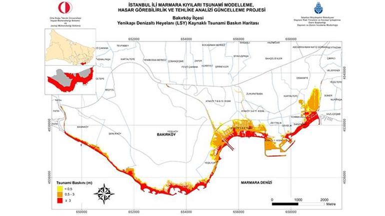 Prof. Dr. Ahmet Cevdet Yalçıner, “Tsunami için limitte bir sarsıntı. Fay uzunluğu fayın uzunluğu 12 km, kısa ve de direkt atımlı bir fay olmalı. Onun için bunun oluşturacağı dalga 40-50 santimi geçmez. Yani büyük bir sarsıntı, 7.2, 7.6 bile olsa. Bunun da hesaplarını yapmıştık. İstanbul Büyükşehir Belediyesi için hazırladığımız bir proje vardı. O proje kapsamında yapmıştık. 2019-2020’de bitirdik o projeyi. Orada sismik kaynaklı bu bölgede oluşacak tsunaminin kıyılardaki tesirlerinin az olacağı görüldü. Kimsenin başını karıştırmamak lazım, denizaltı heyelanı olursa o vakit dalga oluşması daha büyük olur. O hususlar da incelenmişti tıpkı proje kapsamında. İstanbul Büyükşehir Belediyesi’nin web sitesinde yer alıyor bu proje sonuçları ve raporlar. Araştırmalar yapılarak İstanbul’un Marmara kıyılarında tsunami tahliye levhalarıyla, işaretleriyle gök bölge işaretleri yerleştirilmiş durumda. Yani tsunami için yapılması gerekenler yapılmıştı. O nedenle bu hususta da şu kademede zelzeleye hazırlık önemli” dedi.