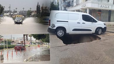 Adana'da tesirli olan sağanak yağış nedeniyle cadde ve sokaklarda sel oldu. Bir hafriyat kamyonunun tekeri sel nedeniyle çöken yolda yan…