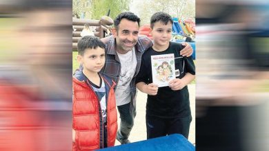 Senarist ve oyuncu Etem Caner Karaüç, ‘Yeşil Ayaklar Kulübü’ kitabını minik okuyucuların beğenisine sundu.