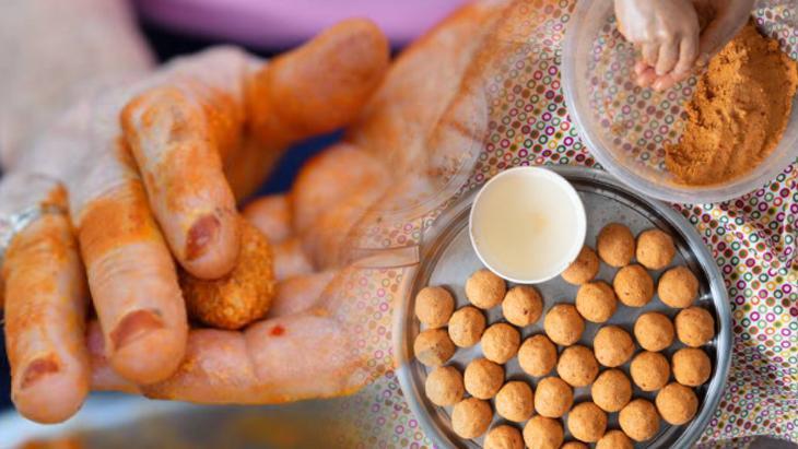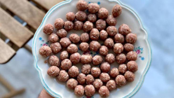 Bu etapta elde ettiğiniz hamurdan fındık büyüklüğünde modüller yapmalısınız. Elinizi hafif ıslatıp, harçtan minicik mantı topları yapın. Bu topları haşlayarak pişirmeniz gerekiyor.
