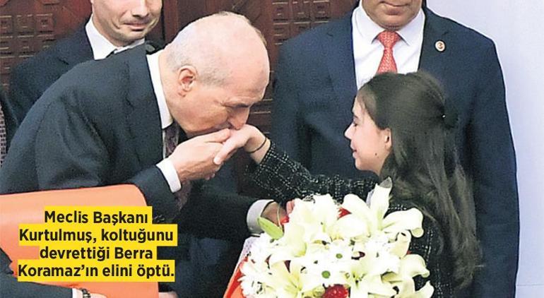 Konuşmasının akabinde “TBMM çocuk özel oturumu”nu başlatan Kurtulmuş, koltuğunu oylama sonucunda Keçiören Şinasi İlkokulu 4’ncü Sınıf Öğrencisi Berra Koramaz’a devretti. 6. sınıf öğrencisi Abdullah Talha Demir ve 4. sınıf öğrencisi Hikaye Çıtak ise katip üyelik yaptı. Koramaz, konuşmasında “Erdem, kıymet ve hareket çerçevesinde şekillenen Maarif Modeli, ulusal şuurla sahip olduğumuz bedelleri ders kitaplarımıza da yerleştirerek geleceğin teminatı biz çocuklara yol göstermektedir” dedi. “Geleceğin teminatı biz çocuklar bilmekteyiz ki aileye sahip çıkmak, vatana sahip çıkmaktır” diyen Koramaz, Aile Yılı kapsamında yapılacak çalışmaların takipçisi olacaklarını aktardı.