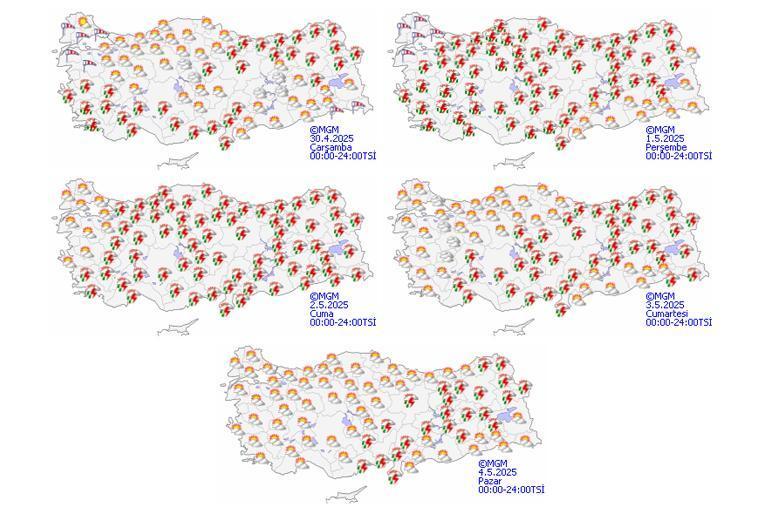 Parçalı ve çok bulutlu, (Hatay dışında) bölge genelinin lokal sağanak ve gök gürültülü sağanak yağışlı geçeceği varsayım ediliyor.