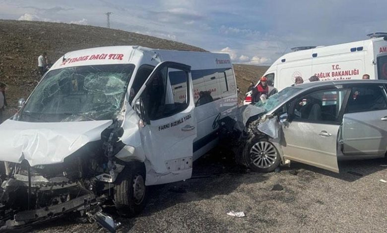 Öğretmenleri taşıyan minibüs ile araba çarpıştı! 15 kişi yaralandı