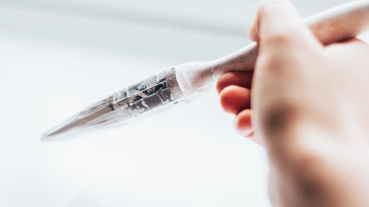 Astarı yalnızca doldurulmuş noktalara uygulayarak başlayın, böylelikle pervazın geri kalanı astarlanıp boyandığında göze çarpmaz. Astarın 24 saat boyunca büsbütün kurumasını bekleyin, akabinde astarlı alanları tekrar zımparalayın.