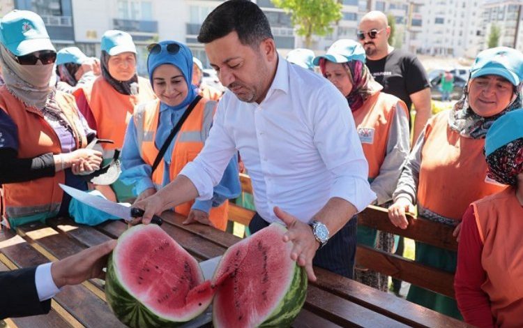 Cevher Dudayev Mahallesi’ndeki incelemeleri sırasında Park ve Bahçeler Müdürlüğü personeline karpuz ikramında da bulunan Arı’ya incelemeleri sırasında Başkan Yardımcıları Ahmet Çöler ve Hasan İler ile bazı belediye meclis üyeleri de eşlik etti.