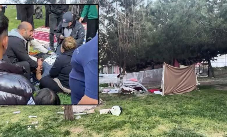 Olay bugün akşam saatlerinde Mehterçeşme Mahallesi Gaziler Parkı’nda meydana geldi. Annesi ve 3 çocuğuyla birlikte yaşayan Pınar Bakırcı, 23 Nisan’daki 6,2 büyüklüğündeki sarsıntının akabinde parka kurdukları çadırda kalmaya başladı. Bakırcı’nın bir müddettir başka yaşadığı eşi Turgut Bakırcı, konuşmak için parka geldi.