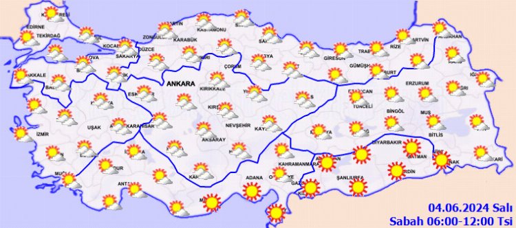 ANKARA (İGFA) – Meteoroloji Genel Müdürlüğü, 4 Haziran Salı gününe ilişkin günlük hava tahmin raporunu yayımladı.