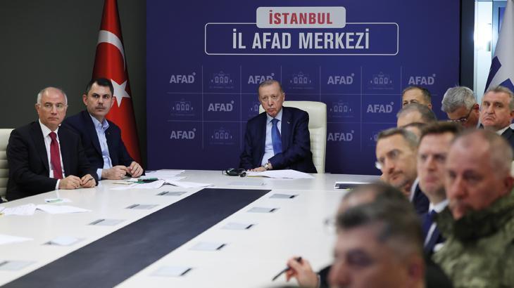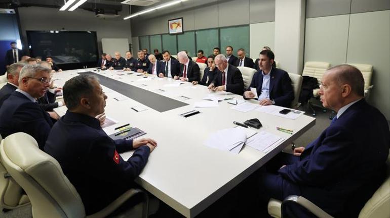 Hasdal’daki İstanbul Vilayet Afet ve Acil Durum Müdürlüğünde bulunan kriz merkezini ziyaret eden Erdoğan’a, ilgili bakanlar ve yetkililer tarafından kapsamlı brifing verildi.