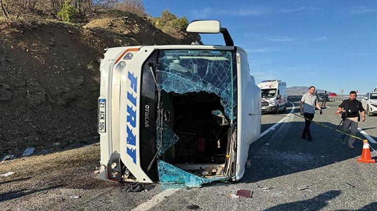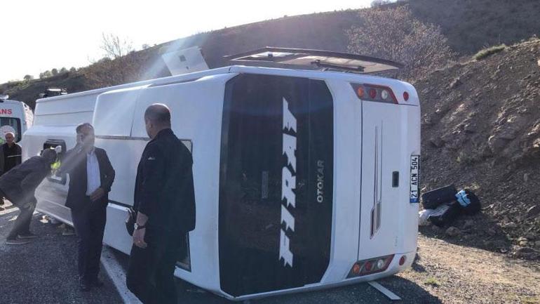 Sürücüsünün kimliği şimdi öğrenilemeyen 21 ACN 504 plakalı midibüs, Elazığ-Diyarbakır kara yolunun 45. kilometresinde denetimden çıkarak karşı şeride geçip devrildi. Kazada, birinci belirlemelere nazaran, ortalarında şoförün de bulunduğu 22 kişi yaralandı.