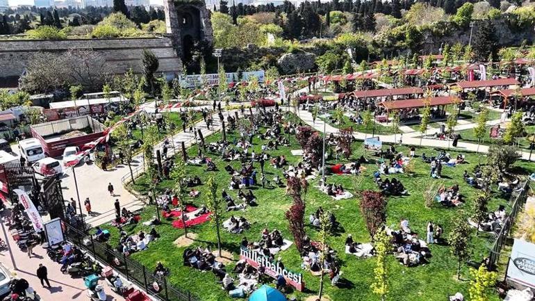 Fatih’teki Saraçhane Parkı, Fatih Anıt Parkı ve Arkeoloji Parkı’na gelen çok sayıda vatandaş yeşil alanlarda oturmak için meskenlerinden getirdikleri hasır ve kilimleri yerlere serdi.