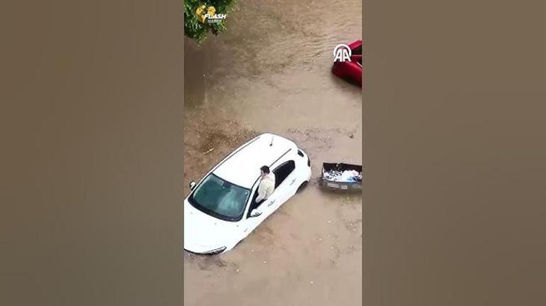 Merkez Çukurova ilçesi Toros Mahallesi’nde de birtakım araçlar yolda kaldı. Sürüklenmeye başlayan bir arabanın şoförü de aracın üzerine çıkarak yardım bekledi.
