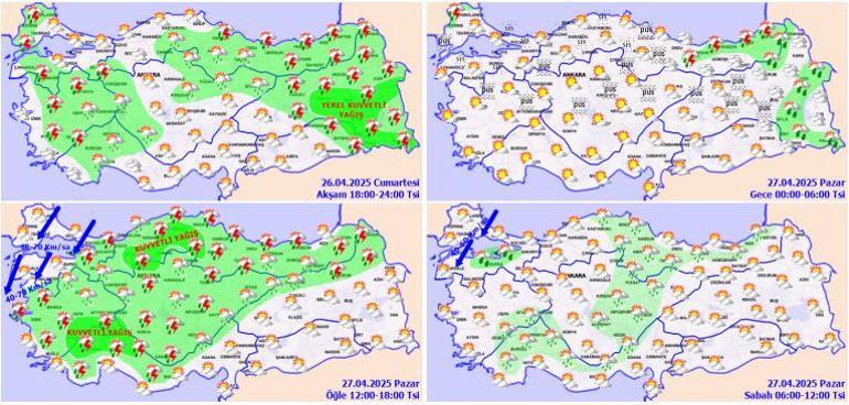 Parçalı ve çok bulutlu, bu akşam ile yarın (Pazar) sabah saatlerinden sonra sağanak ve yer yer gök gürültülü sağanak yağışlı geçeği iddia ediliyor. Yağışların, lokal kuvvetli olması bekleniyor.