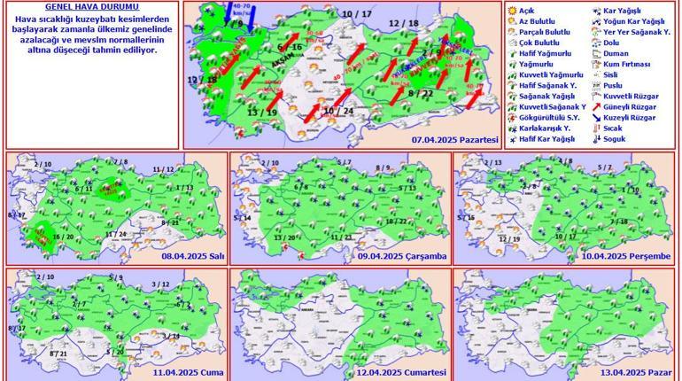 Çevre, Şehircilik ve İklim Değişikliği Bakanlığı’na bağlı Meteoroloji Genel Müdürlüğü’nün son meteorolojik değerlendirmelerine nazaran, Türkiye 7 Nisan Pazartesi gününden itibaren Balkanlar üzerinden gelecek soğuk ve yağışlı havanın tesirine girecek.