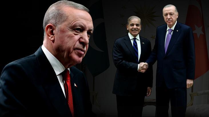 Cumhurbaşkanı Recep Tayyip Erdoğan Pakistan Başbakanı Şahbaz Şerif ile ortak basın toplantısında açıklamalarda bulunuyor. Erdoğan’ın açıklamaları özetle şöyle: Pakistan’ı son olarak Yüksek Seviyeli Stratejik İşbirliği Kurulumuzun 7. Toplantısı vesilesiyle Şubat ayında ziyaret etmiştim. Bu vesileyle Sayın Başbakan’a ve Pakistan makamlarına sıcak misafirperverlikleri için bir defa daha teşekkür ediyorum. Bu karşılıklı temaslar ülkelerimiz ortasındaki bağların ulaştığı müstesna seviyesi ortaya koyuyor. Aziz kardeşimle bugün yaptığımız görüşmede ikili bağlarımızın yanı sıra bölgesel ve global problemler hakkında görüş alışverişinde bulunduk.