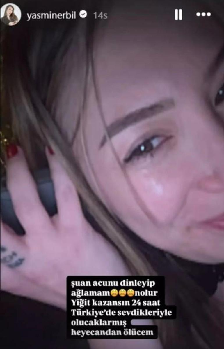 Erbil “Şu an Acun’u dinleyip ağlamam. Ne olur Yiğit kazansın 24 saat Türkiye’de sevdikleriyle olacaklarmış. Heyecandan öleceğim.” dedi.