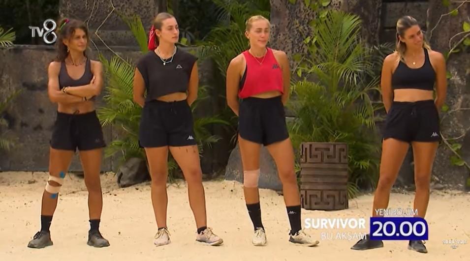 Survivor’da dördüncü dokunulmazlık oyunu öncesi eleme adayları sırasıyla şu formda oluştu: Asena, Meryem ve Yağmur Banda.