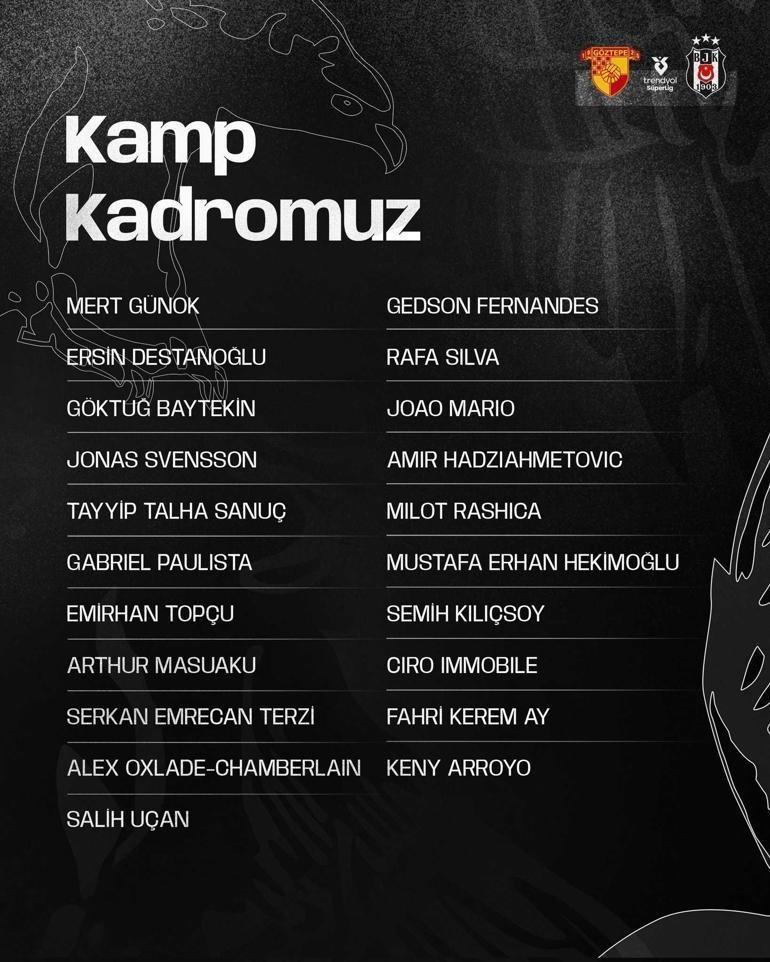 Beşiktaş’ın Göztepe takımı açıklandı. Sakatlığını atlatan Emirhan Topçu ile cezaları sona eren Tayyip Talha Sanuç ile Semih Kılıçsoy takımda kendisine yer buldu.