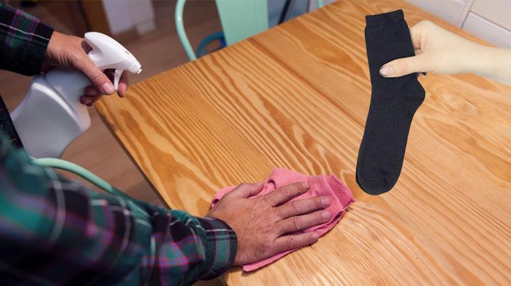 Eski çorapları elinizin üzerine geçirerek şahane bir toz bezi elde edebilirsiniz. Paklık sırasında bez yerine kuru yahut nemli çorapları alternatif olarak kullanabilirsiniz. Bu metot sayesinde mükemmel bir hareket kabiliyeti kazanmış olacaksınız. Paklık sırasında ulaşamadığınız köşe alanları taban bucak temizleyebilirsiniz.