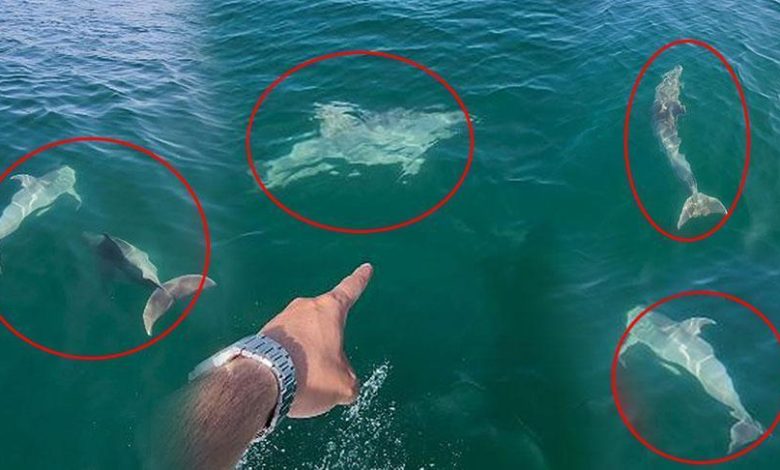 O anlara tanıklık eden balıkçı İbrahim Özkan, yunusların tekneyle birlikte yüzdüğü anları cep telefonuyla kayda aldı. Sürünün dakikalar boyunca teknenin etrafında dönerek ilerlemesi renkli manzaralar oluşturdu.