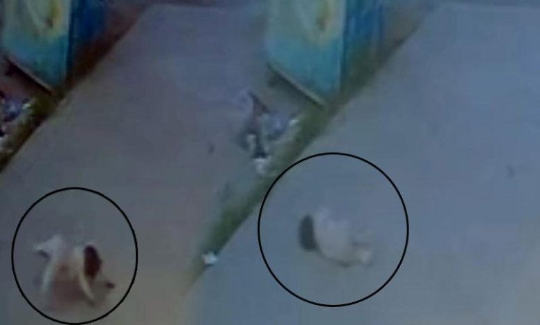 Bu ortada bebeğin düştüğü anlar, etraftaki bir iş yerinin güvenlik kamerasına yansıdı.